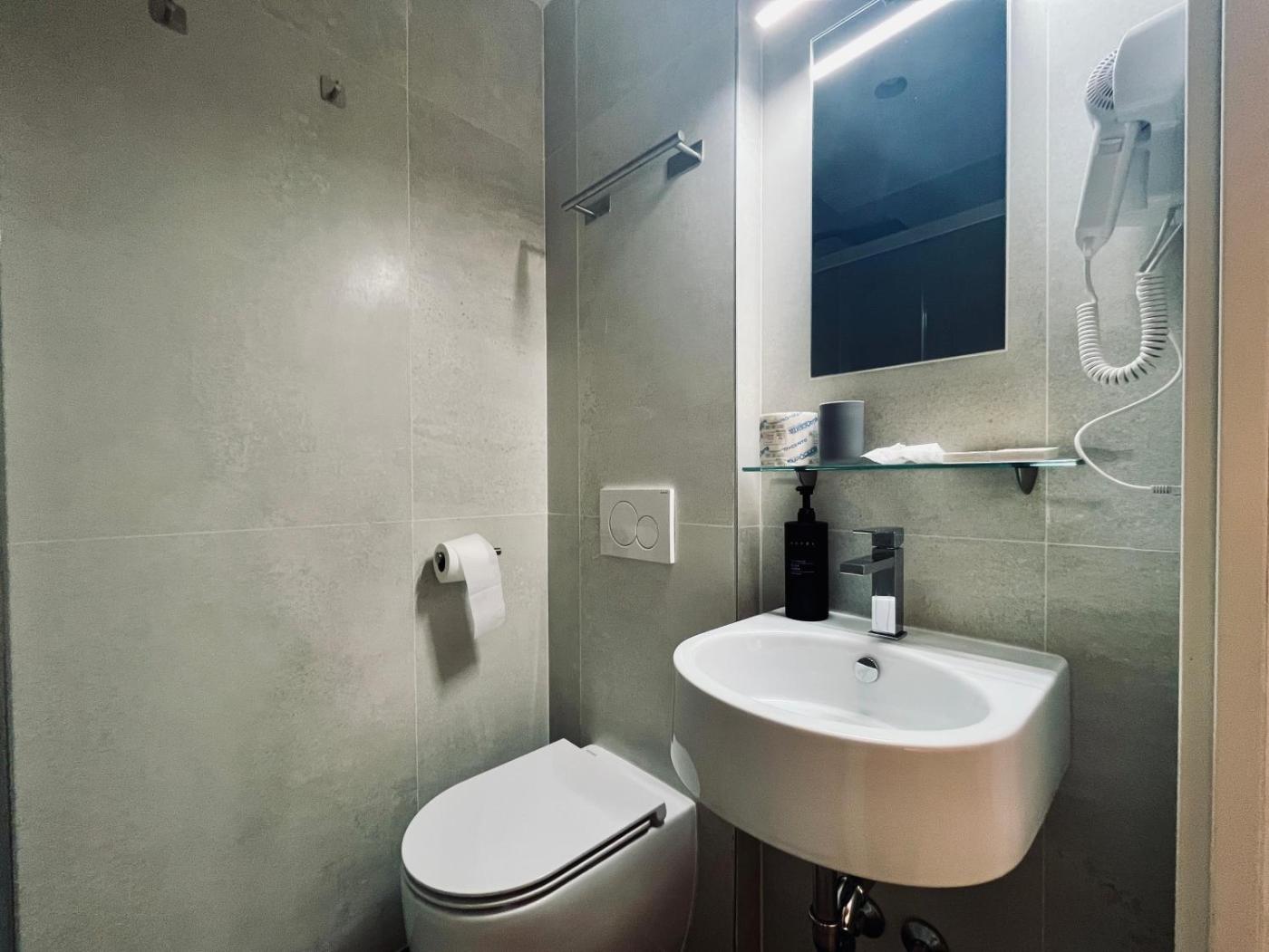 Double Room with Private Bathroom. Providing free toiletries and bathrobes, this double room includes a private bathroom with a shower, a hairdryer and slippers. The double room provides air conditioning, a wardrobe, heating, a flat-screen TV with streaming services, as well as a quiet street view. The unit offers 1 bed.