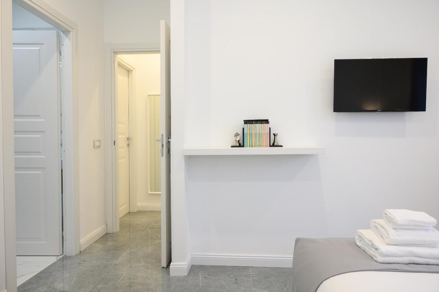 One-Bedroom Apartment. Boasting a private entrance, this air-conditioned apartment features 1 living room, 1 separate bedroom and 2 bathrooms with a shower and a bidet. The well-equipped kitchen has a stovetop, a refrigerator, kitchenware and a microwave. The apartment features tiled floors, a seating area with a flat-screen TV, soundproof walls, a coffee machine, as well as a wardrobe. The unit has 2 beds.