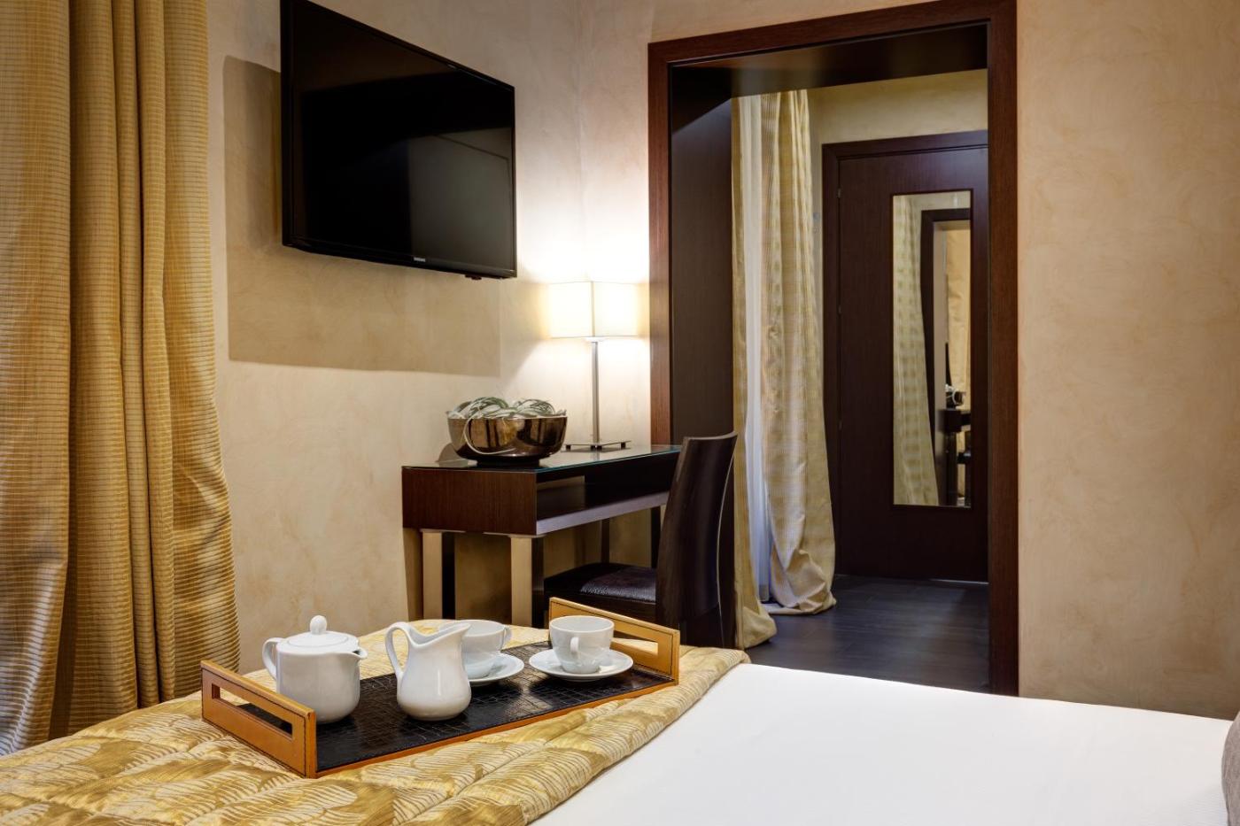 Classic Double Room - Annex. Address: via Bocca di Leone 88, check-in at main building Set just opposite the main building. Featuring elegant contemporary furnishings and refined textiles, this air-conditioned room offers free WiFi, a 42" plasma TV and minibar. The marble bathroom comes with a hairdryer and free toiletries. Please specify bed preference when booking. ;