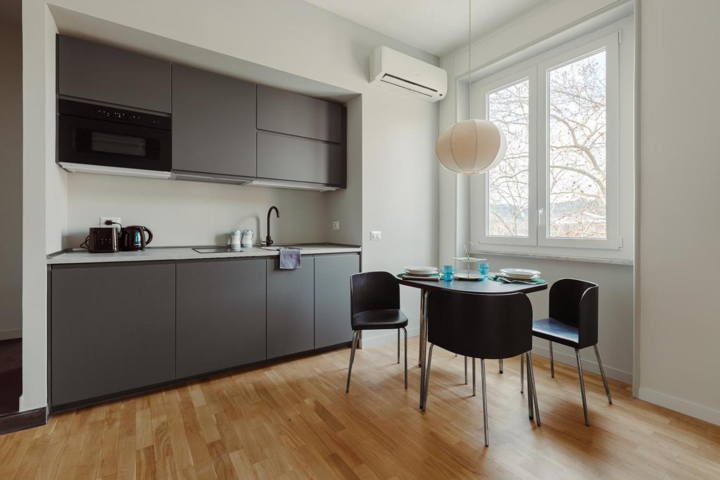 Quadruple Room with Private Bathroom. The quadruple room includes a private bathroom equipped with a shower, a bidet and a hairdryer. In the well-equipped kitchen, guests will find a stovetop, a refrigerator, kitchenware and a microwave. This quadruple room is air-conditioned and features a seating area with a flat-screen TV, a washing machine, soundproof walls, a tea and coffee maker, as well as a dining area. The unit offers 2 beds. ;